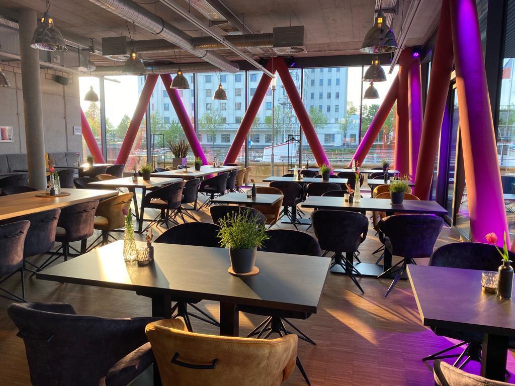 Sprecht uns an, wir haben, neben unserem schönen Gastraum im Erdgeschoss, den ihr auch exklusiv buchen könnt, auch in der oberen Etage des Digitalkontors einen großen Raum mit Dachterrasse und spektakulärem Ausblick über den Innenhafen, den wir für Events herrichten können.